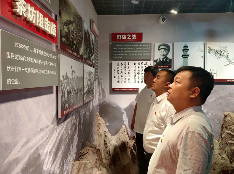 走進晉豫邊革命紀念館,同志們看到的是一副晉豫邊抗日根據地略圖,真實展現了晉豫邊地區(qū)人民不畏艱險頑強戰(zhàn)斗開創(chuàng)晉豫邊抗日根據地的斗爭精神。隨著講解員的步伐,同志們置身其中,從創(chuàng)建晉豫邊、玉川燃烽火、浴血太行山、逐鹿中原等八個方面了解到晉豫邊區(qū)根據地從抗日戰(zhàn)爭到解放戰(zhàn)爭長達11年的革命斗爭歷程,感受著老一輩革命家和晉豫邊人民在艱苦卓絕的環(huán)境下用鮮血和生命詮釋了中華民族的錚錚鐵骨和浩然正氣。在一幅幅珍貴的圖片和一件件戰(zhàn)斗紀念品中,大家的思緒被拉回戰(zhàn)火紛飛的年代,現場感受我們黨所走過的艱難曲折歷程,深刻理解和領會了中國共產黨的奮斗歷程和取得的偉大成就。
