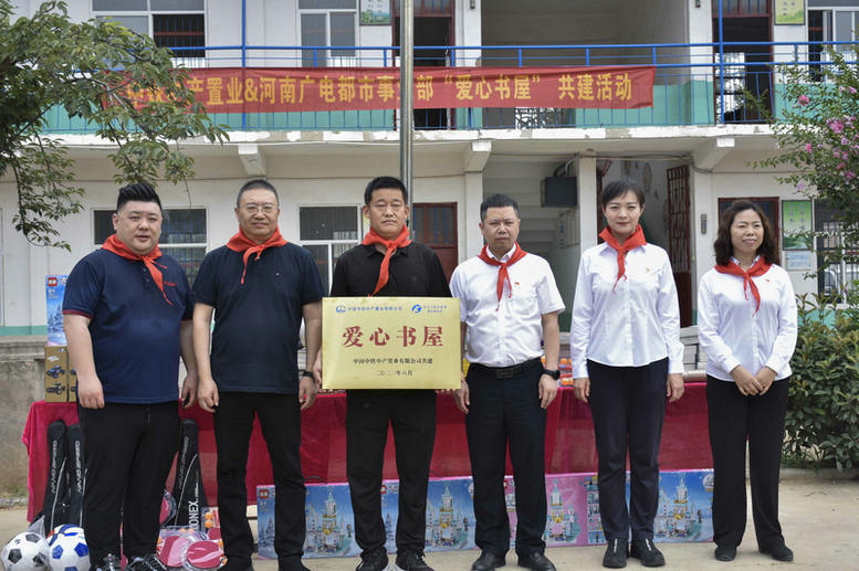 6月25日,中鐵中產(chǎn)置業(yè)有限公司聯(lián)合河南廣播電視臺發(fā)起 “愛心書屋共建活動”。活動在開封市尉氏縣南曹鄉(xiāng)磚樓小學開展。