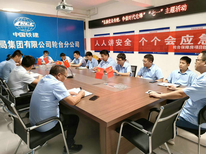 為慶祝中國共產(chǎn)黨建黨102周年,中鐵二十一局輪臺保障房項目黨支部于6月28日開展了慶“七一”主題活動,全體黨員通過聽黨課、面對面座談、中共黨史知識搶答競賽、重溫入黨誓詞等活動,進一步堅定理想信念,增強干事激情,為早日完成項目建設(shè)任務(wù)凝聚強大動力。