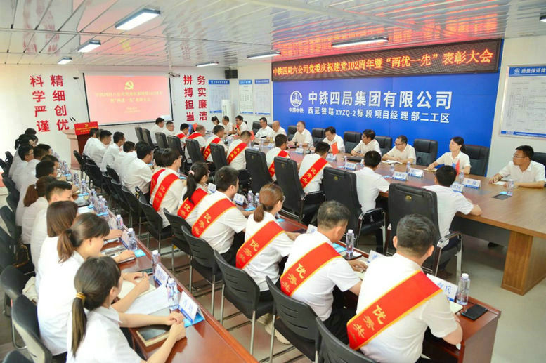 西安訊:弘揚(yáng)延安精神、勇當(dāng)開路先鋒。6月29日,中鐵四局六公司為隆重慶祝中國共產(chǎn)黨成立102周年。以學(xué)貫黨的二十大精神”“兩優(yōu)一先”為主線,在西延高鐵Ⅱ標(biāo)項目舉辦“緬懷革命先烈、傳承紅色基因、學(xué)貫公司第一次黨代會精神”暨2023年“七一”表彰大會主題黨日活動。