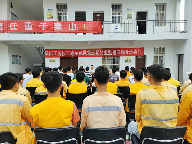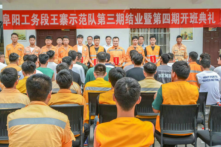 日前,安徽鐵路阜陽工務(wù)段亳州線路車間王寨示范隊30名隊員結(jié)業(yè)典禮暨第四期開班典禮在王寨示范隊院內(nèi)隆重舉行。阜陽工務(wù)段黨委書記姚慧君、勞人科科長劉玉玲、職教科科長馬迪及亳州線路車間黨支部書記黃祥春參加。
