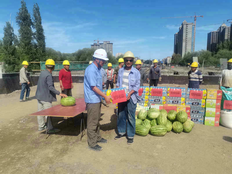 7月10日,項(xiàng)目部工委先后對(duì)工人宿舍降溫設(shè)備、食堂衛(wèi)生、食品安全等情況進(jìn)行了詳細(xì)檢查,隨后為67名在烈日下緊張施工的工人們送上了包含飲料、礦泉水、西瓜、綠豆、防暑藥品等物資的“清涼”大禮包,對(duì)工人們表示敬意和感謝,并要求施工現(xiàn)場(chǎng)負(fù)責(zé)人一定要高度重視高溫下勞作人員的安全防護(hù)和防暑降溫,切實(shí)做好飲食衛(wèi)生工作,延長(zhǎng)午休時(shí)間,避開高溫時(shí)段工作,切實(shí)保障一線工人的身體健康。
