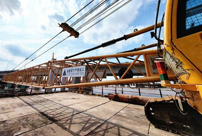吊車駛離現(xiàn)場(chǎng) 呂奎元攝