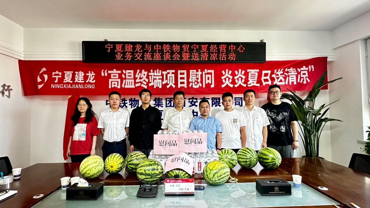 近日,中鐵物貿(mào)西安公司寧夏經(jīng)營(yíng)中心迎來(lái)寧夏建龍龍翔鋼鐵有限公司“夏送清涼”并開展交流座談。
