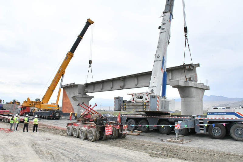 8月14日,在中鐵二十一局集團有限公司承建的蘭新鐵路精河至阿拉山口段增建二線S2標項目施工現(xiàn)場,經過1個小時的吊裝作業(yè),石油管線中橋首孔T梁架設成功。