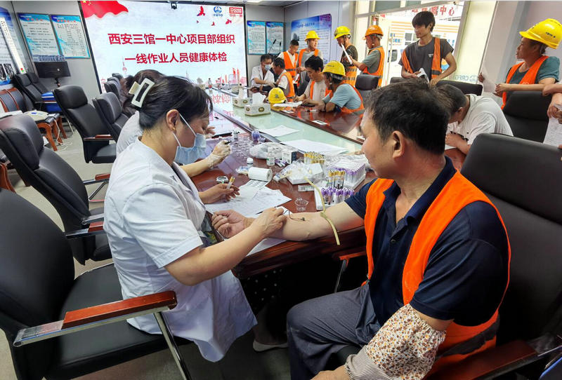 為切實(shí)維護(hù)作業(yè)人員的身心健康,提高大家的健康意識,8月16日,中鐵一局西安三館一中心項(xiàng)目組織開展了“健康體檢進(jìn)工地 情暖一線工友心”活動,為80余名一線作業(yè)人員進(jìn)行免費(fèi)的健康體檢。