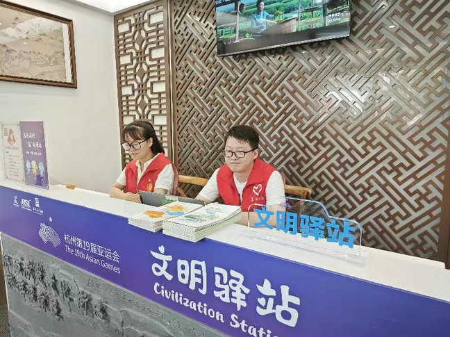 杭州訊(通訊員 張霞)一間充滿亞運(yùn)特色的屋子里面,傳來(lái)了熱情的聲音,“同志,你好,有什么需要幫助的嗎?”一聲聲親切的問(wèn)候在耳畔響起。這是怎么回事呢,8月份一批“亞運(yùn)文明驛站”正式啟用,為積極響應(yīng)亞運(yùn)城市號(hào)召,北新路橋集團(tuán)華東分公司青年們也參與到助力亞運(yùn)城市活動(dòng)中去。瞧,他們正在為一些需要幫助的人提供咨詢、引導(dǎo)服務(wù)。