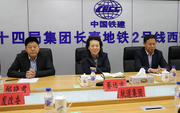 中國鐵路工程建設網(wǎng)訊(通訊員 王福生)10月29日,長春市政協(xié)主席綦遠方率政協(xié)、發(fā)改委、國資委和國土局等領導深入中鐵十四局集團長春地鐵2號線西延線調研。市朝陽區(qū)、寬城區(qū)、汽開區(qū)、征收辦、軌道交通集團有限公司等有關單位負責人陪同調研。