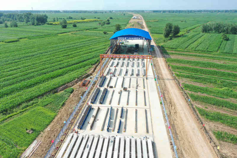 目前,宿固項目重點控制性工程新汴河特大橋、沱河大橋0#塊均已澆筑完成,開始懸澆梁懸臂段施工。全線樁基施工完成2256根,墩柱完成423根,蓋梁、臺帽完成163個,梁板預(yù)制完成367榀、已安裝44片,箱涵完成42道,土方填筑完成約186萬方......項目施工現(xiàn)場一片熱火朝天的繁忙景象。