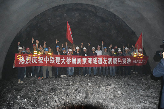 10月31日下午,中鐵建大橋工程局一公司建恩高速公路周家灣隧道左幅順利貫通。
