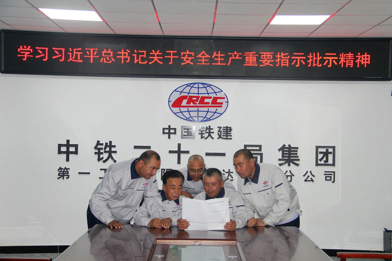9月12日,中鐵二十一局一公司達(dá)坂城分公司三葛莊道碴專用線裝車班組的少數(shù)民族職工認(rèn)真學(xué)習(xí)領(lǐng)會習(xí)近平總書記關(guān)于安全生產(chǎn)的重要指示批示精神,進(jìn)一步增強(qiáng)安全意識。
