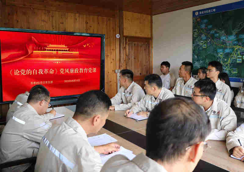 為扎實開展好黨性黨風(fēng)黨紀(jì)教育,進(jìn)一步引導(dǎo)廣大黨員干部堅定理想信念,筑牢廉潔底線,錘煉忠誠干凈擔(dān)當(dāng)?shù)恼伪旧毙侣窐虮鴪F(tuán)交建公司蒼泰9標(biāo)項目全體黨員共同學(xué)習(xí)《論黨的自我革命》之“必須把反腐倡廉當(dāng)作政治必修課”內(nèi)容。