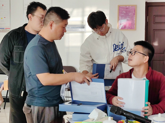 內(nèi)業(yè)組在檢查資料 季龍菊攝