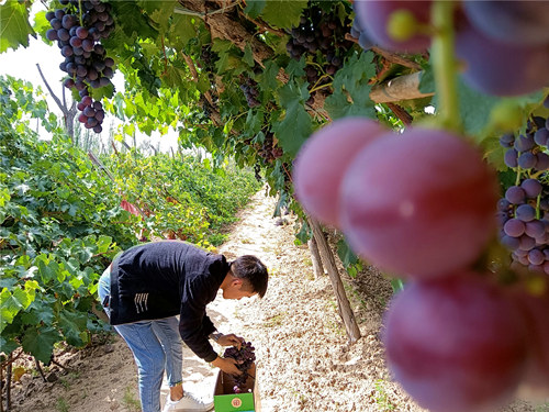 采摘園內(nèi),萬紫千紅的葡萄映入眼簾,陽光的照耀下,顆顆顯得搖搖欲墜。到達目的地后,“工作組”成員頂著大太陽便開始在葡萄架中穿梭,剪下的每一串葡萄都是用心挑選。隨著汗珠的滴落,一串串的葡萄也被裝入了箱內(nèi)??粗鴫酒饋淼臐M滿數(shù)十箱葡萄,再想到員工們也很快就能嘗到這么甜美的果實,工作組人員的心里便樂開了花,一切的疲憊也隨之煙消云散。