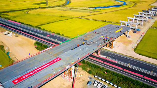 (本站消息,通訊員賀曉東)日前,由中鐵二十三局承建的鐵科高速方正西樞紐互通施工現(xiàn)場(chǎng),隨著最后一片鋼箱梁精準(zhǔn)落位,標(biāo)志著方正西樞紐互通主線橋主跨哈同高速鋼箱梁成功合龍,提前完成鐵科高速控制性工程方正西樞紐互通鋼箱梁全部節(jié)點(diǎn)工期目標(biāo),為后續(xù)施工奠定良好基礎(chǔ)。