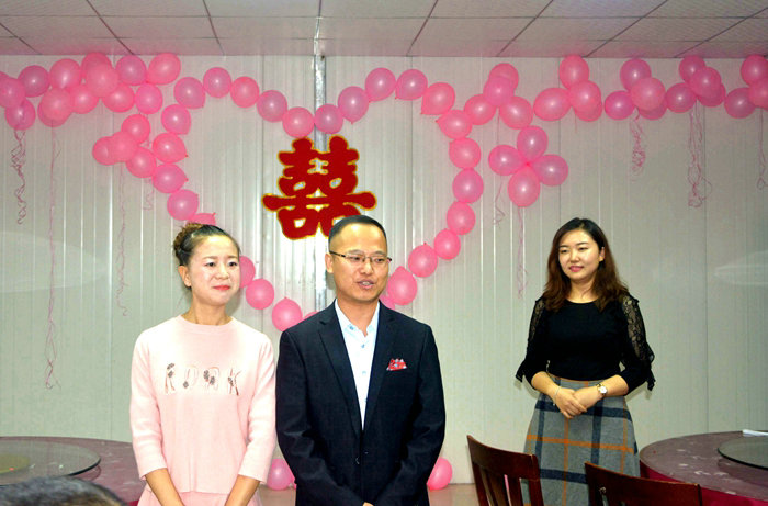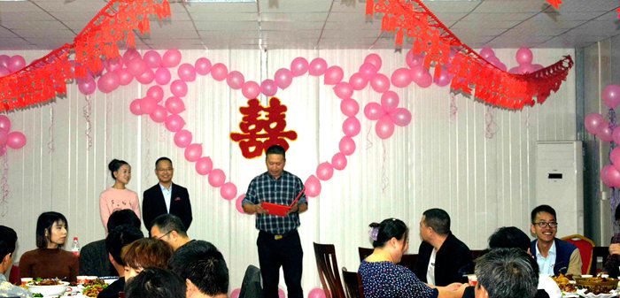 項(xiàng)目經(jīng)理為新人證婚,希望兩位新人永結(jié)同心、白頭偕老、共建幸福美滿的家庭,用聰明才智、青春熱情為項(xiàng)目建設(shè)增光添彩。作為全體職工“娘家”的公司工會(huì)派出代表為新人主持婚禮,代表公司工會(huì)向兩位新人送上禮品和祝福,希望兩位新人在今后的日子里互敬互愛(ài)、相濡以沫、風(fēng)雨同舟,并介紹了他們相識(shí)、相知、相戀的愛(ài)情故事。