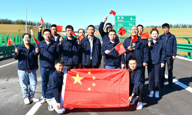承擔(dān)綏大高速公路施工的中鐵二十三局集團(tuán)參建職工勇于擔(dān)當(dāng)、守土盡責(zé),為龍江交通事業(yè)高品質(zhì)發(fā)展貢獻(xiàn)央企力量。以安全、優(yōu)質(zhì)、高效的優(yōu)異成績(jī),為祖國(guó)74華誕獻(xiàn)禮,祝福偉大祖國(guó)日新月異、繁榮昌盛、國(guó)泰民安,生日快樂(lè)! (楊景霜 朱晨)