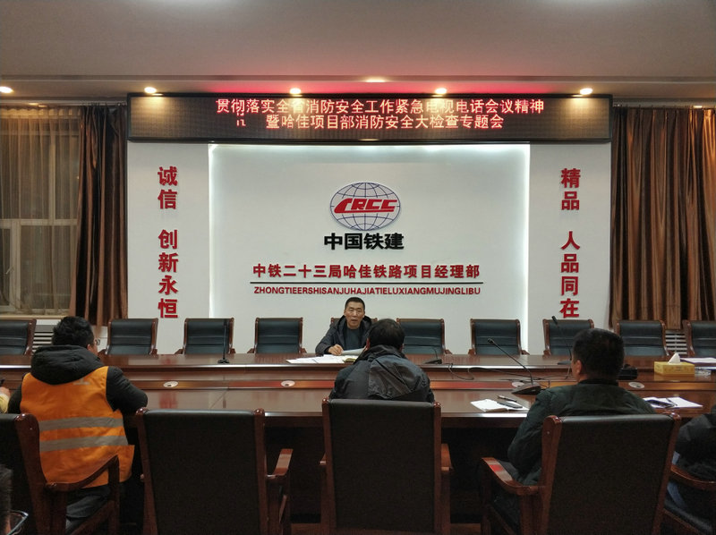 11月5日晚,哈佳項目部在8樓會議室召開了由二公司副總經(jīng)理、哈佳鐵路項目經(jīng)理部總經(jīng)理袁正國主持的貫徹落實全省消防安全工作緊急電視電話會議精神暨哈佳項目部消防安全大檢查專題會議。