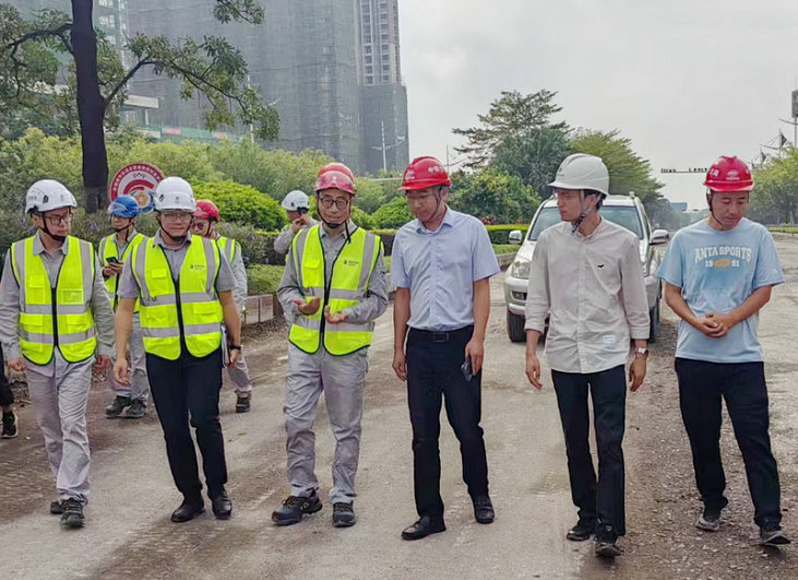 鐵路工程建設網(wǎng)訊(通訊員 劉海林))近日,廣西防城港核電有限公司總經(jīng)理黃飛一行到中鐵十五局白龍核電項目進廠道路及應急道路B段維修工程總承包項目施工現(xiàn)場開展安全大檢查。