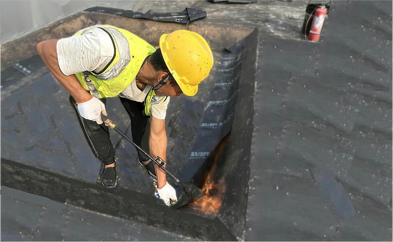 北新路橋集團(tuán)長(zhǎng)沙分公司舞陽片區(qū)項(xiàng)目工人手持防水作業(yè)專用噴火槍,將防水材料緊密地貼合在墊層表面,仿若質(zhì)量安全密不可分,正如我們對(duì)品質(zhì)的不懈追求。