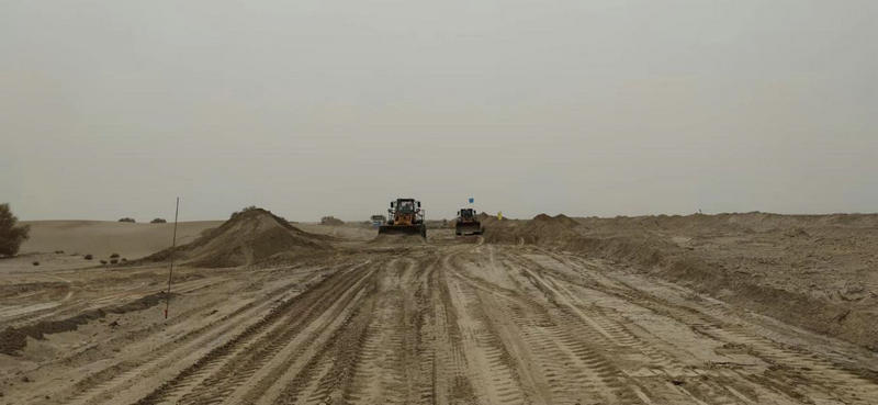 G314線公路作為連接新和和沙雅的重要干線道路,一直以來(lái)都面臨著風(fēng)沙侵襲的困擾。由于地處大漠之中,沙塵天氣頻繁,風(fēng)沙揚(yáng)起后會(huì)嚴(yán)重影響道路的可行性和行車(chē)安全性。為了解決這一問(wèn)題,當(dāng)?shù)卣e極響應(yīng),投入大量人力物力進(jìn)行風(fēng)積沙路基施工。