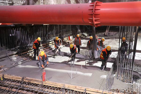 第一流水段長22.5米,基坑寬21.7米,距起始里程5米處還有一個長9米,寬3.35米,高2.39米的廢水池。經(jīng)過項目部全體員工和主體隊伍的共同努力,環(huán)島第一流水段終于具備了澆筑混凝土的條件。并于11月11日下午14:30準時開始澆筑,在澆筑工程中,全體參戰(zhàn)人員發(fā)揚鐵軍精神,克服夜間施工、天氣寒冷等多種困難,員工們沒有一絲絲怨言。