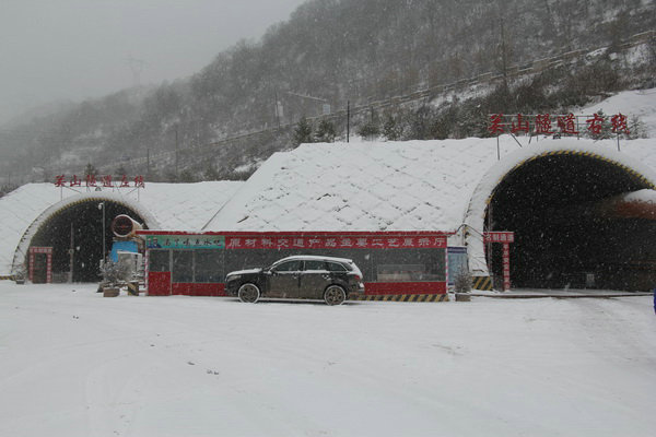 白雪皚皚的關(guān)山隧道進(jìn)口???????   關(guān)山隧道進(jìn)口端左線與斜井的順利貫通,標(biāo)志著平天高速公路控制性工程關(guān)山特長(zhǎng)隧道建設(shè)取得了重要的階段性成果,為全線按期順利竣工奠定了堅(jiān)實(shí)基礎(chǔ)。