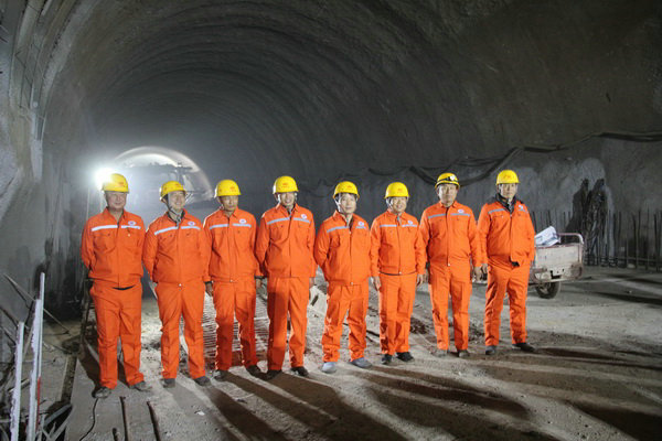 項(xiàng)目部領(lǐng)導(dǎo)在貫通點(diǎn)合影???????   平天高速PTKZ1標(biāo)項(xiàng)目部為攻克隧道施工難關(guān),在強(qiáng)化組織管理,優(yōu)配施工資源,著力現(xiàn)場(chǎng)安全質(zhì)量管控的同時(shí),大力開(kāi)展技術(shù)創(chuàng)新,在施工中采用了一系列新技術(shù)、新工藝、新設(shè)備。如采用大管棚配合三臺(tái)階七步法順利下穿304省道,推廣應(yīng)用爆破專家何廣沂教授研發(fā)的“新型聚能水壓光面爆破新技術(shù)”;另外邀請(qǐng)公司“創(chuàng)新專家”馬小利成功研發(fā)“小導(dǎo)管縮尖機(jī)”、引進(jìn)防水板自動(dòng)鋪設(shè)臺(tái)車、霧炮養(yǎng)生機(jī)、自行式液壓仰拱棧橋、單臂鑿巖臺(tái)車、單臂濕噴機(jī)等先進(jìn)設(shè)備,克服地質(zhì)復(fù)雜、極端天氣影響、地材短缺等困難,科學(xué)組織,精心施工,為創(chuàng)建平安工地,打造品質(zhì)工程發(fā)揮了重要作用。