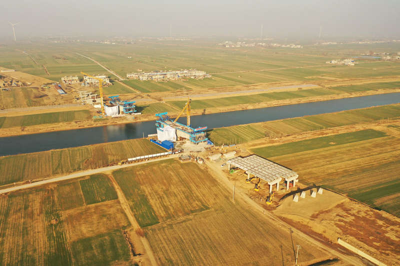 截至目前,樁基完成2426根,承臺、系梁完成418個(gè),墩柱完成807根,臺帽(蓋梁)完成373個(gè),梁板預(yù)制完成2142片,懸臂現(xiàn)澆完成106個(gè)節(jié)段,預(yù)制箱涵安裝完成765米,現(xiàn)澆涵洞完成1178米,圓管涵完成1521米,土方填筑完成392萬方,重點(diǎn)控制性工程新汴河特大橋、沱河大橋上部結(jié)構(gòu)懸澆梁正在全力沖刺合龍。