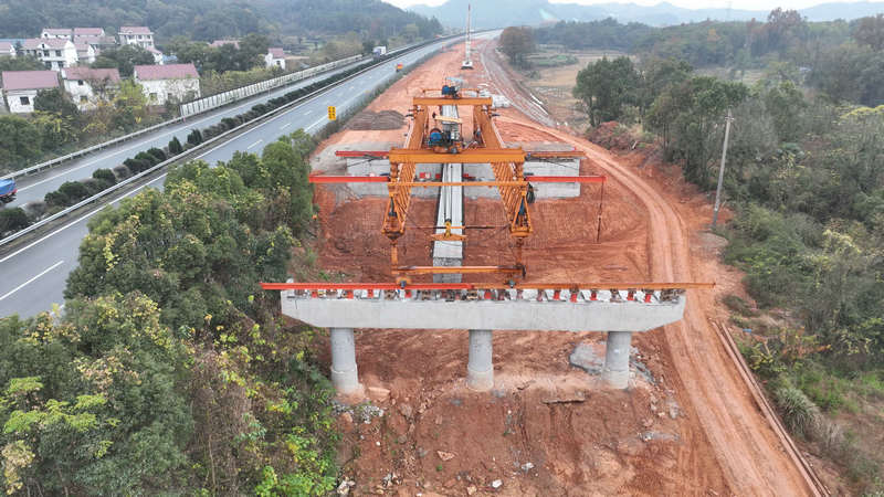 圖說:北新路橋集團(tuán)長沙分公司 滬昆B1標(biāo)項(xiàng)目胡家榨大橋26#臺(tái)架梁施工 孫鵬攝