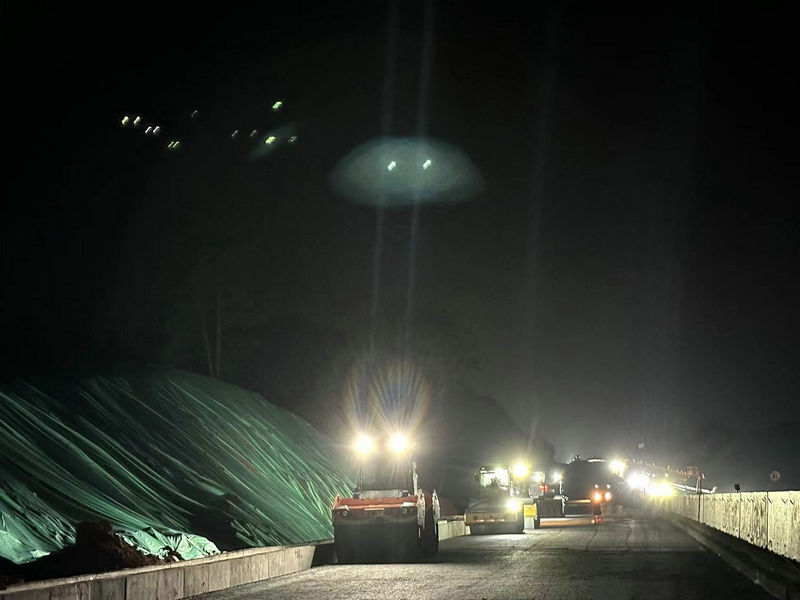 圖說(shuō):北新路橋集團(tuán)長(zhǎng)沙分公司滬昆B1標(biāo)項(xiàng)目道路基層攤鋪碾壓施工 羅茂林?jǐn)z