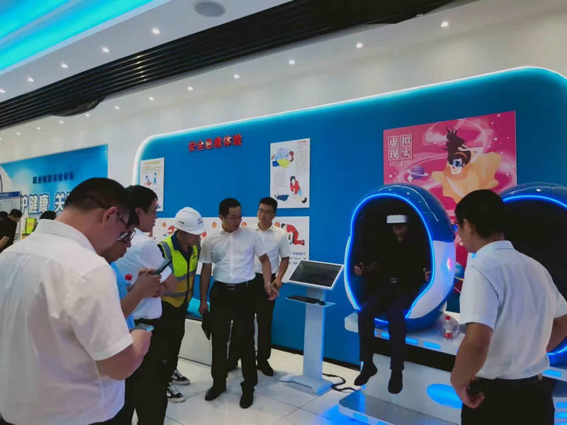 項(xiàng)目經(jīng)理阮超陪同國(guó)家住建部信息中心米文忠處長(zhǎng)一行到中梁山隧道進(jìn)口調(diào)研期間、在智慧信息化中新VR模擬常見(jiàn)各類安全生產(chǎn)事故感官體驗(yàn)