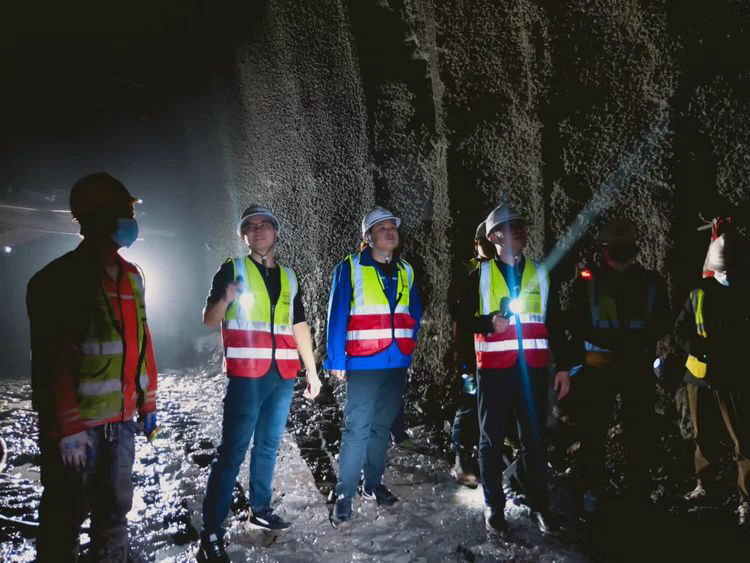 項目書記韓崇生(左三)經(jīng)理阮超(左四)深入隧道作業(yè)面與現(xiàn)場責(zé)任人定時檢查