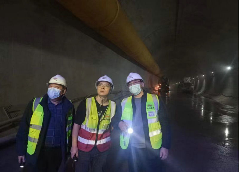 鄧林義(左1)在隧道現(xiàn)場(chǎng)督查