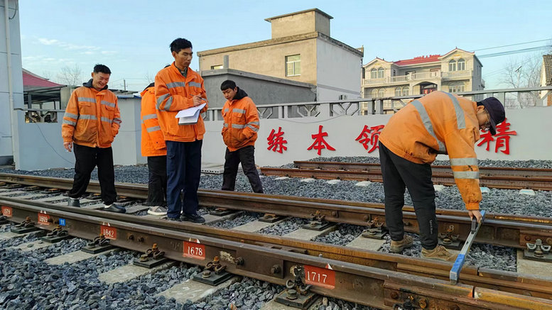 日前,在中國(guó)鐵路上海局集團(tuán)有限公司阜陽(yáng)工務(wù)段王寨示范隊(duì)練功場(chǎng),第四期隊(duì)員翟祥雨向幾名同事詳解道岔檢查標(biāo)準(zhǔn)。大家邊聽(tīng)邊問(wèn),翟祥雨總是不厭其煩地解答。這是繼上周培訓(xùn)過(guò)一批同事后,翟祥雨在本周又開(kāi)始新的一批人員道岔檢查培訓(xùn)。