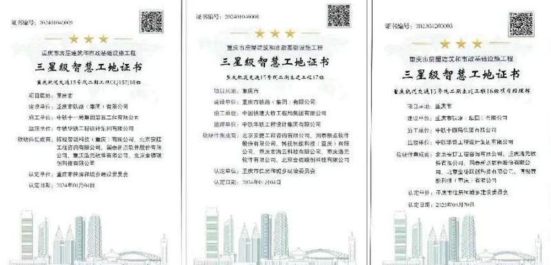 重慶軌道15號(hào)線二期總承包部所屬三個(gè)標(biāo)段榮獲“三星級(jí)智慧工地”稱號(hào)