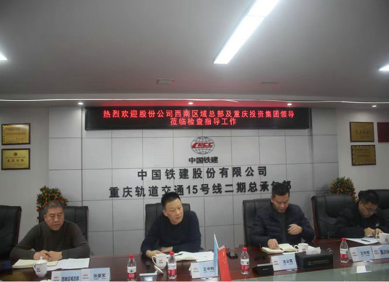 1月24日下午,中國鐵建西南區(qū)域總部執(zhí)行總經(jīng)理王中岐帶隊到中鐵建重慶軌道交通15號線二期總承包部開展安全專項督導檢查,并召開安全交流會,對安全工作提出了要求。中國鐵建西南區(qū)域總部安全監(jiān)督官張愛軍、中國鐵建昆侖投資集團副總經(jīng)理兼重慶投資集團黨委書記、董事長劉一鳴,安全總監(jiān)龍云霄、安全監(jiān)督部總經(jīng)理王東明、中鐵建重慶軌道交通15號線二期總承包部指揮長李兵、黨工委書記王向平、副指揮長陳華富、彭鵬程、安全總監(jiān)李燕斌及17標、18標項目部經(jīng)理顧賀云、趙建偉等相關人員陪同。
