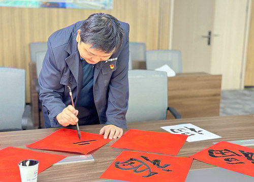 活動現(xiàn)場,翰墨飄香。幾名書法愛好者職工們揮毫潑墨,用一個個蒼勁有力的“福”字傳遞出滿滿的節(jié)日祝福,營造了濃濃的新年喜慶氛圍。前來觀看的其他職工們紛紛駐足、連連稱贊,經(jīng)仔細(xì)挑選后,各自挑選自己喜愛的福字貼在了門上。