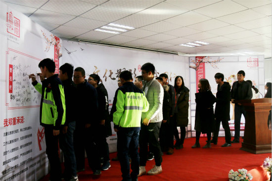 在主持人的帶領(lǐng)下,全體職工舉起右手莊嚴(yán)宣誓,誓與文明同行,踐行企業(yè)文化理念,恪盡職守與企業(yè)榮辱與共。在共同宣誓后,大家寫下了內(nèi)心的感想貼到“文明樹”上,并在簽名板上留名,“文明樹”上“枝繁葉茂”,彰顯了全體干部職工爭做文明員工,推動企業(yè)跨越發(fā)展的信心和決心。