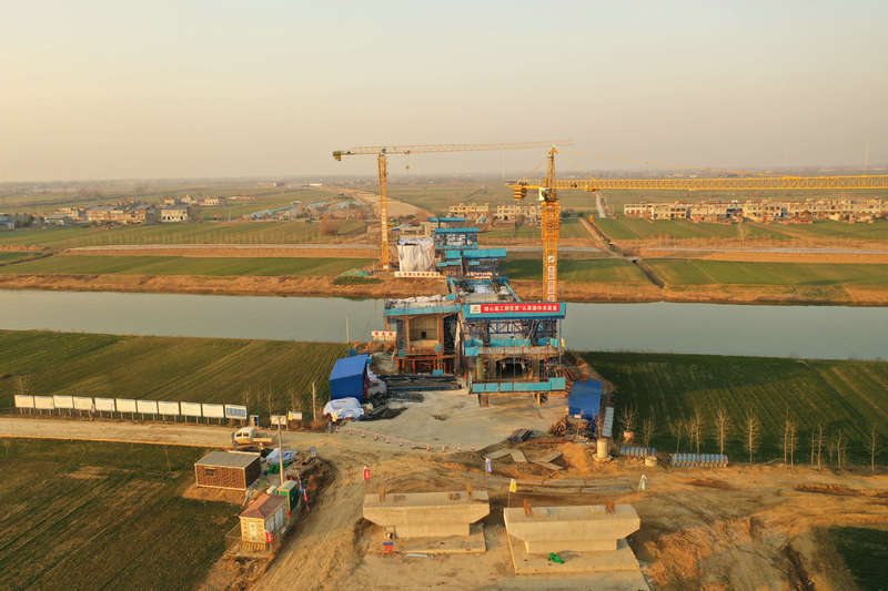 目前,工人進場200余人,投入機械600余臺,全線6個土建標段均實現(xiàn)安全復(fù)工。新汴河特大橋上焊接的“滋滋”聲此起彼伏,樁基沖孔發(fā)出有節(jié)奏的“砰砰”聲,還有工人檢修設(shè)備、攪拌機拌合混凝土、壓路機壓實土方的各種聲響,譜寫成安徽宿固高速公路項目復(fù)工奮進的最美交響。
