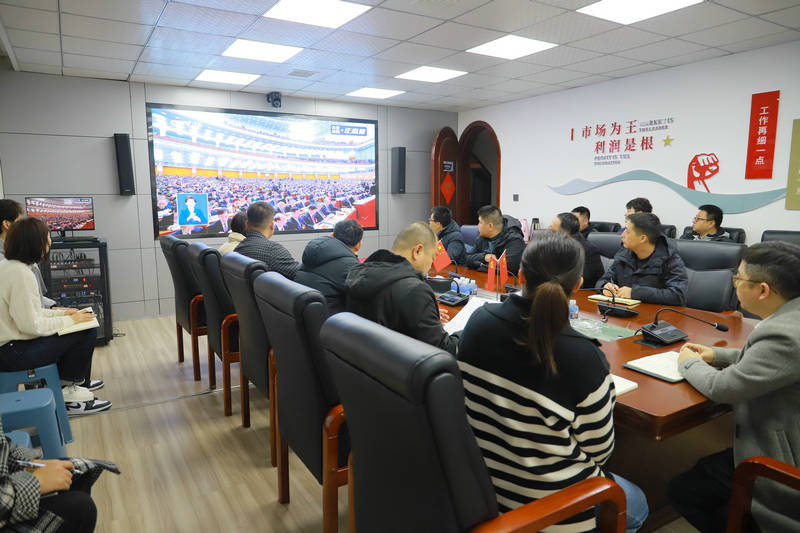 8:40分大屏幕提前接通設(shè)備,同志們懷著激動的心情等待大會開幕。隨著大會開幕,收看直播的同志們?nèi)w起立,高唱國歌。全場同志全程認(rèn)真聆聽、深入學(xué)習(xí)領(lǐng)會。當(dāng)國務(wù)院總理李強作政府工作報告結(jié)束時,同志們也隨著現(xiàn)場代表們一起長時間熱烈鼓掌,表達(dá)對這次團(tuán)結(jié)、勝利、奮進(jìn)的空前盛會的祝賀,表達(dá)對黨中央的高度信賴、堅決擁護(hù)和衷心愛戴。