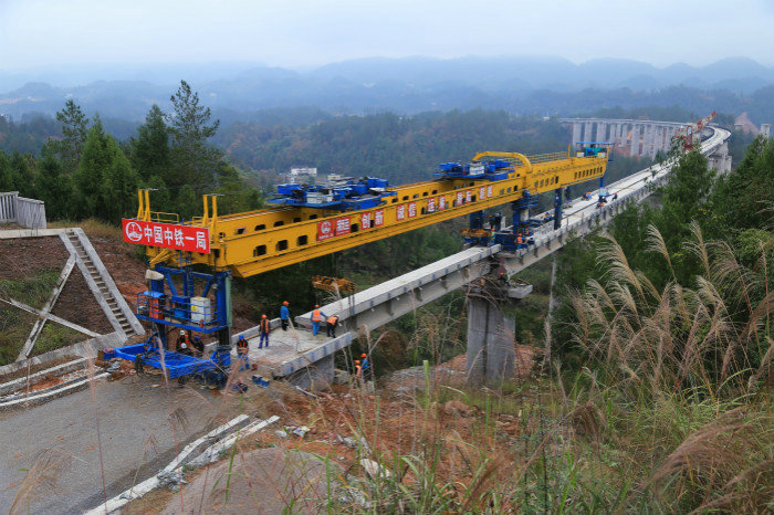 該特大橋全長1.58公里,共有橋墩80臺,需架梁96孔,為項目部承建黔張常鐵路管內(nèi)最后一座特大橋。其中左聯(lián)絡(luò)線需架設(shè)T梁20孔,2018年11月份開始施工,26日16時實現(xiàn)全部鋪通,比原計劃時間提前了4天,為JQ185型架梁機轉(zhuǎn)戰(zhàn)右聯(lián)絡(luò)線施工贏得了時間。