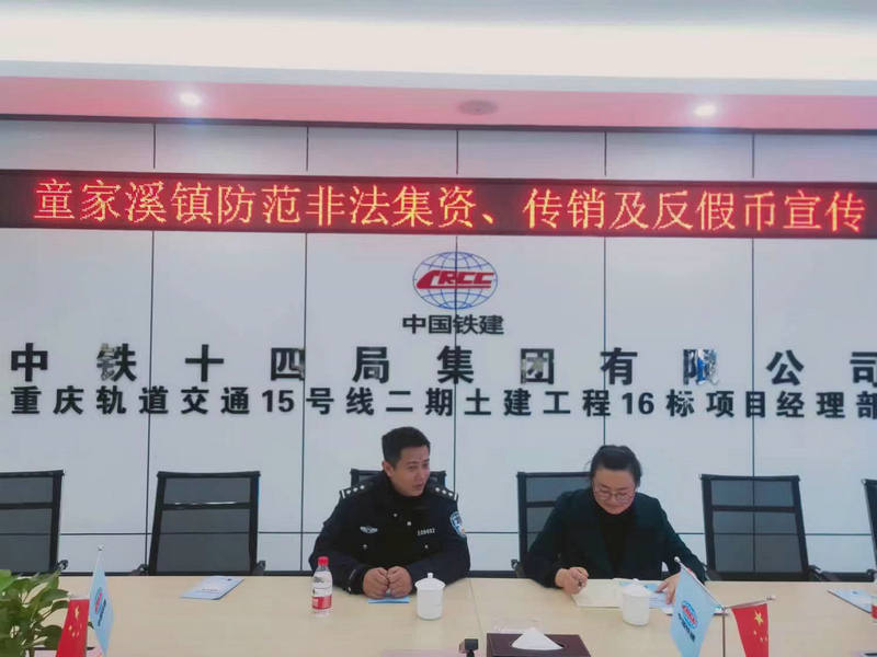 為提醒轄區(qū)全民反詐宣傳工作,提升防范非法集資、傳銷及反假幣詐騙的意識和能力,3月14日,重慶市北碚區(qū)童家溪鎮(zhèn)派出所民警譚崇勇、平安辦公室主任范成敏一行走進(jìn)中國鐵建重慶軌道交通15號線二期總承包部16標(biāo)14局項目部開展防范非法集資、傳銷及反假幣詐騙宣傳活動。