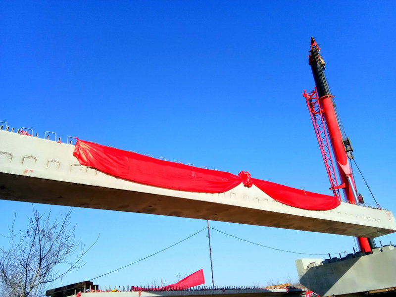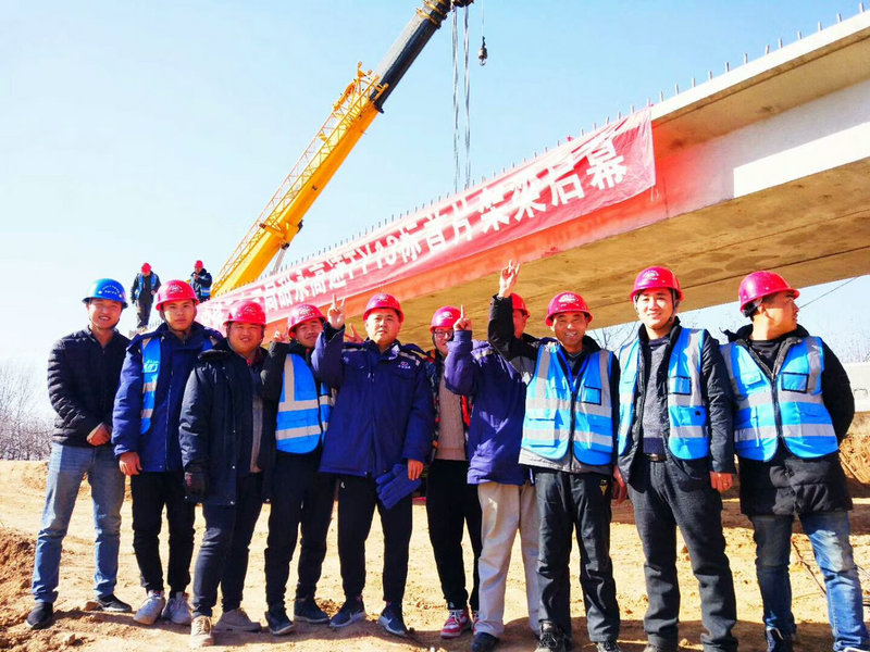 K187+340車行天橋全場332.281米,橋面寬8.5米,由4孔16米24片簡支空心板梁組成。首片16米空心板梁的順利架設(shè)象征著甜永TY13標(biāo)的建設(shè)跨向了新的臺階,兌現(xiàn)了業(yè)主施工工期要求承諾,確保實現(xiàn)了節(jié)點工期目標(biāo)。