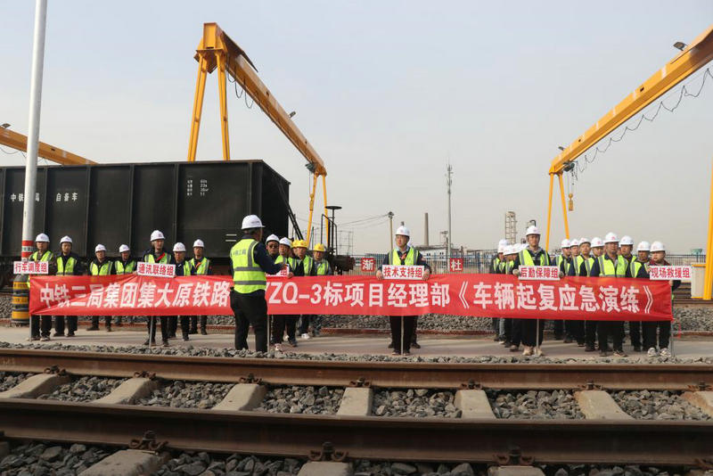 為提高運(yùn)輸作業(yè)人員安全責(zé)任意識,增強(qiáng)應(yīng)對突發(fā)事件的能力和組織協(xié)調(diào)能力,3月23日上午,在集大原鐵路項(xiàng)目鋪架工區(qū)的施工現(xiàn)場,中鐵三局線橋公司運(yùn)輸分公司開展了一場車輛起復(fù)應(yīng)急演練,邀請局指及監(jiān)理單位參加觀摩。