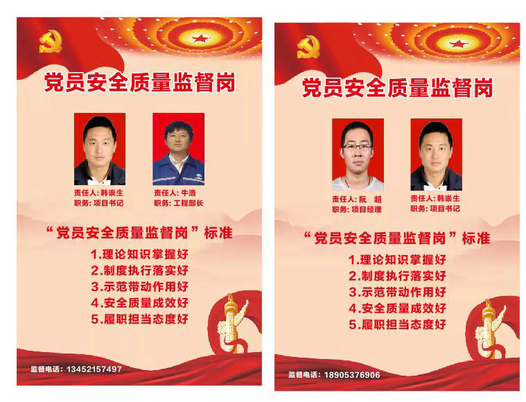 強化“一崗雙責(zé)”的無縫焊接,實現(xiàn)推動項目施工“加速跑”。項目黨支部黨建+融合施工生產(chǎn)責(zé)任不斷壓實,促進了“兩個責(zé)任”不斷強化,領(lǐng)導(dǎo)班子成員不以“業(yè)務(wù)型干部”單打一各行其是,工作的著重點落實“一崗雙責(zé)”上主動擔(dān)當(dāng)作為,既能將對口業(yè)務(wù)梳理的井井有條,帶動的分管工作有板有眼,又能以扎實有素的思想熏陶引領(lǐng)員工向善、營造和諧關(guān)系、維護項目穩(wěn)定,并夯實了“一崗雙責(zé)”中的黨風(fēng)廉政建設(shè)責(zé)任,讓上級的有關(guān)會議、通知精神有效地部署落實。項目黨支部通過年初簽約廉潔履職包保責(zé)任書、廉潔履職述職、定期召開廉潔履職集體和個人談話、崗位述職等活動,壓實了廉潔履職包保責(zé)任,確保了重要環(huán)節(jié)有把關(guān)、有檢查,有力地促進了黨風(fēng)廉政建設(shè)和反腐敗工作的實效性。