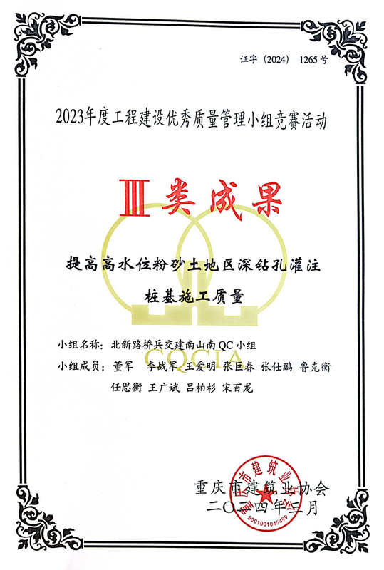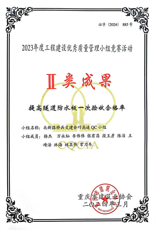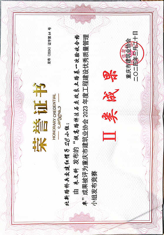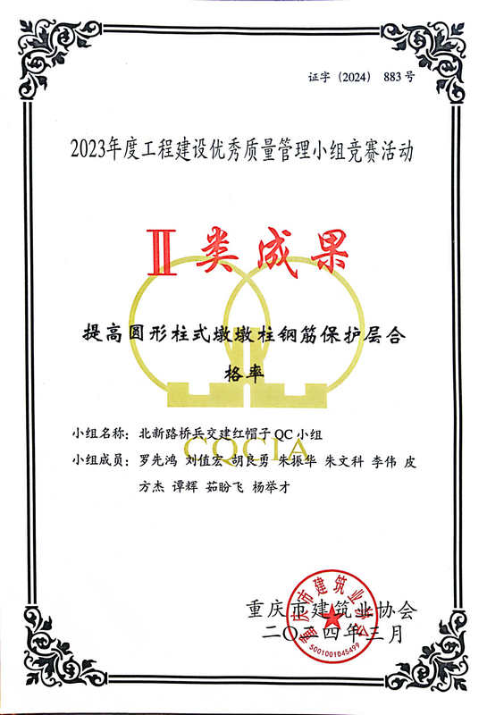 2023年,該公司青年創(chuàng)新攻關(guān)小組在公司的大力支持下,自主開展技術(shù)創(chuàng)新、體制創(chuàng)效活動(dòng),大力提升質(zhì)量管理小組活動(dòng)成果水平,及時(shí)將活動(dòng)成果運(yùn)用到公司所屬工程項(xiàng)目中并取得了優(yōu)異的成績(jī)。申報(bào)10項(xiàng)QC成果全部通過重慶市建筑業(yè)協(xié)會(huì)評(píng)審。