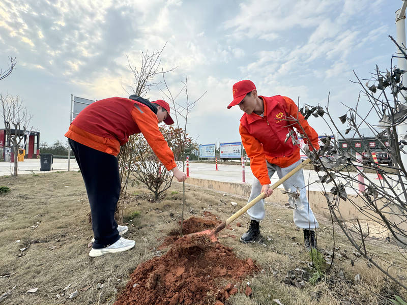 活動現(xiàn)場,大家分工明確,密切配合,揮鍬鏟土,扶苗培土,提桶澆水,呈現(xiàn)出一片火熱的勞動場景,棵棵樹苗昂然挺立,在和煦的春風(fēng)中展現(xiàn)著蓬勃生機(jī),為花園式綜合場站再添一片新綠。