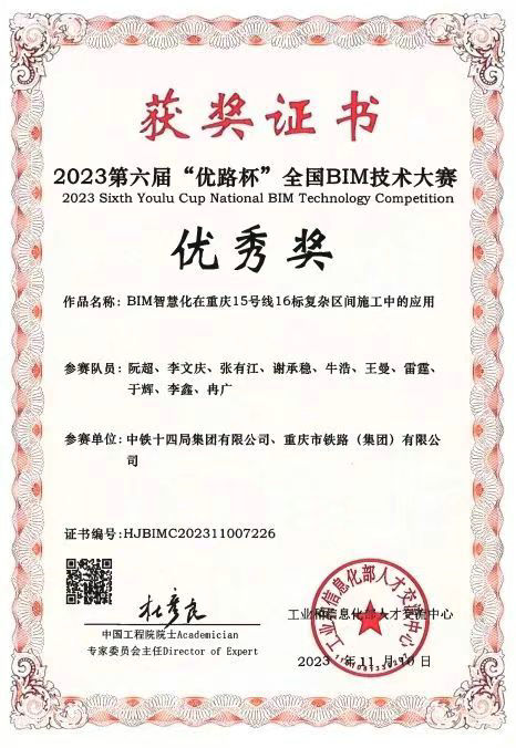 榮獲2023第六屆“優(yōu)路杯”全國BIM技術大賽優(yōu)秀獎