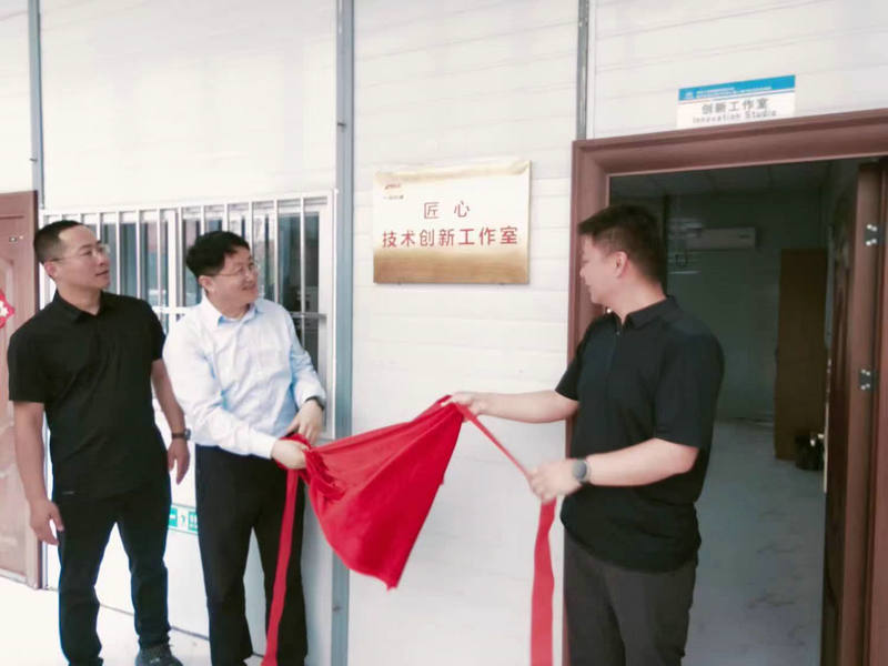 公司副總經(jīng)理兼總工程師李洪江(右)為“匠心技術創(chuàng)新工作室”揭牌